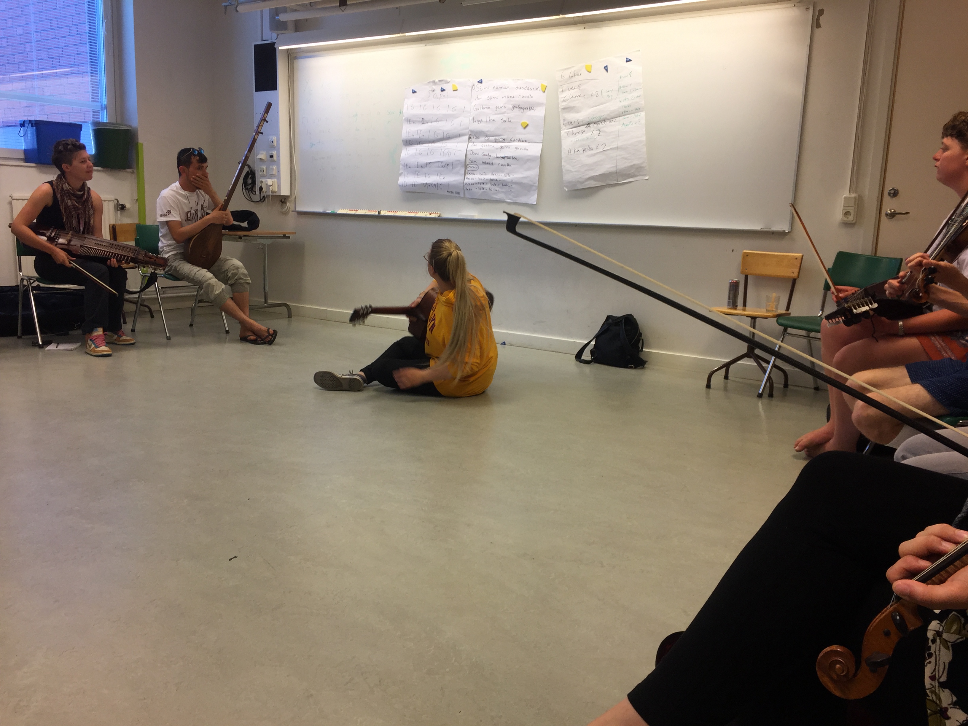 Ethno給每一個工作坊50分鐘的時間教導自己國家的民謠/古調及介紹樂曲背後的涵義,唯一能夠寫下來的就是歌詞和樂曲的編曲架構,接著就是由各國的音樂家不斷的反覆旋律,幫助大家熟悉旋律,這時候就會發現大家超有默契的拿出手機錄音XD 反覆幾次之後大家就記下旋律了,超不可思議!真的立刻記起來!在上台灣音樂工作坊之前還想說,天公落水有點小複雜,然後又不是他們熟悉的音樂類型,應該會花很多時間,結果,根本速成班⋯
