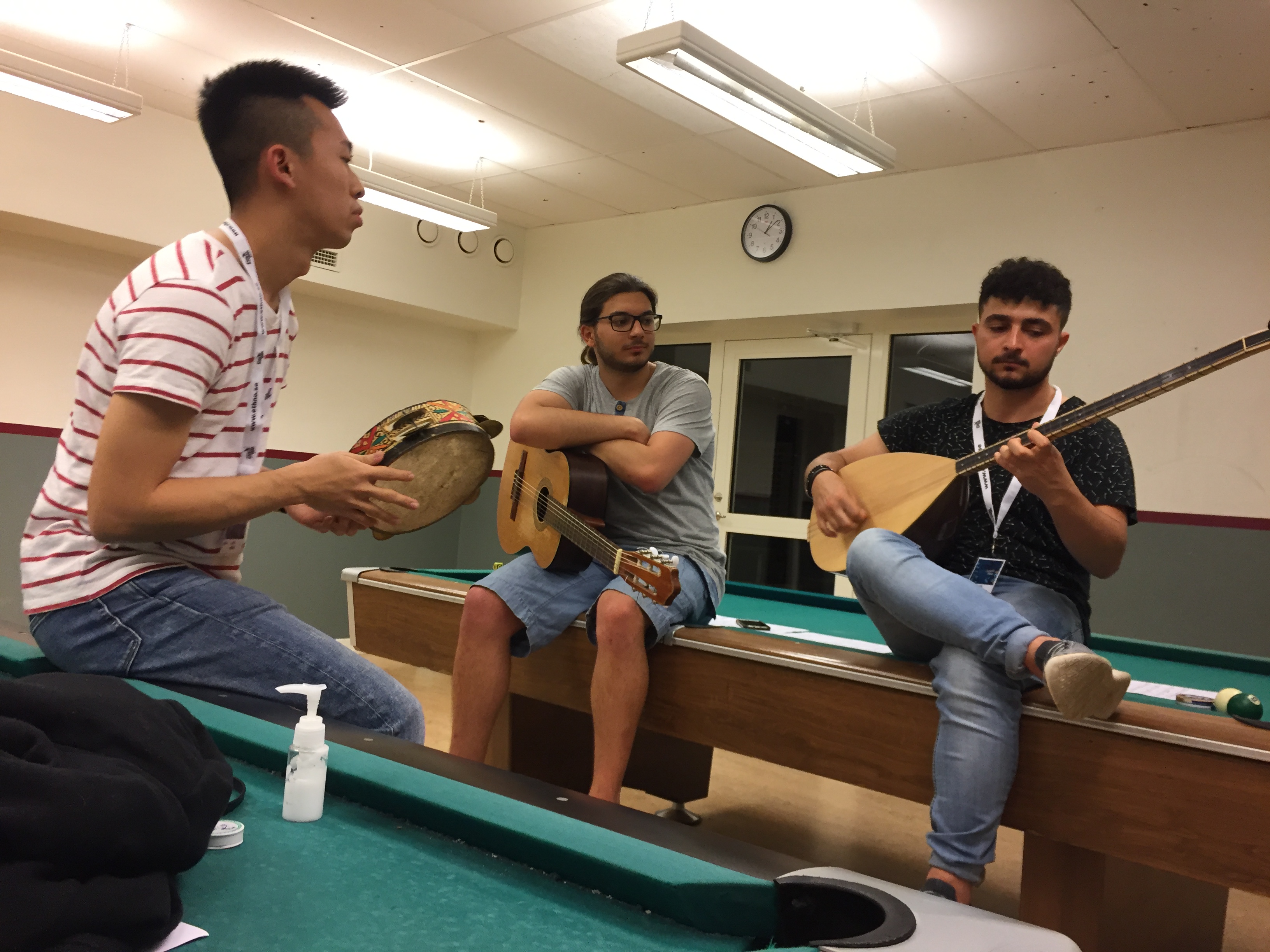 到Ethno的第一個晚上,就被震撼到了來自各國的音樂家們坐在交誼廳裡,一起即興,一起唱歌,還參雜著時不時的大叫聲:)當時甚至沒有燈,一切都是在黑暗中進行,但可以很深刻的感受到大家對音樂的熱情,那個瞬間我真的感覺到自己體內的一部份在燃燒,我快速地戴上指甲,拿出琴,立即加入他們,一直彈到人潮散去,那一晚帶給我的,是用言語無法形容的。